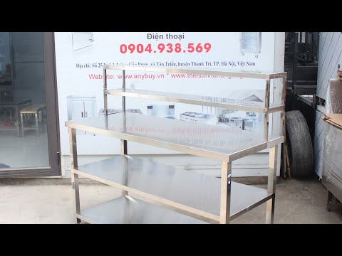 - Kệ inox: Là các tầng kệ được đặt phía trên mặt bàn, giúp tận dụng không gian theo chiều dọc. Kệ có thể có một hoặc nhiều tầng, dùng để lưu trữ nguyên liệu, gia vị, dụng cụ sơ chế, hoặc các thiết bị nhỏ khác.